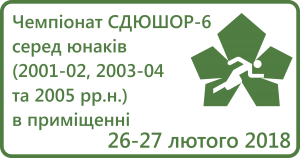 Чемпіонат СДЮШОР-6 серед юнаків (2001-02, 2003-04 та 2005 рр.н.) в приміщенніBy kostritsky / 20 March 2018 Дата: 26-28 лютого 2018 року Місце: манеж КМШВСМ (пр. Тичини 18) Регламент змагань Розклад змагань Результати змагань