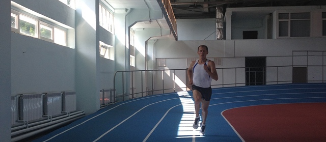 Чемпіон світу та Європи з бігу на 1500 м в приміщенні, заслужений майстер спорту України Іван Гешко тестує покриття щойно відреконструйованого манежу на Березняках.