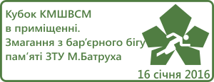Кубок КМШВСМ в приміщенні. Змагання з бар’єрного бігу пам’яті ЗТУ М.БатрухаBy kostritsky / 16 January 2016 Дата: 16 січня 2016 року Місце: манеж КМШВСМ (пр. Тичини 18) Регламент змагань Розклад змагань Результати змагань