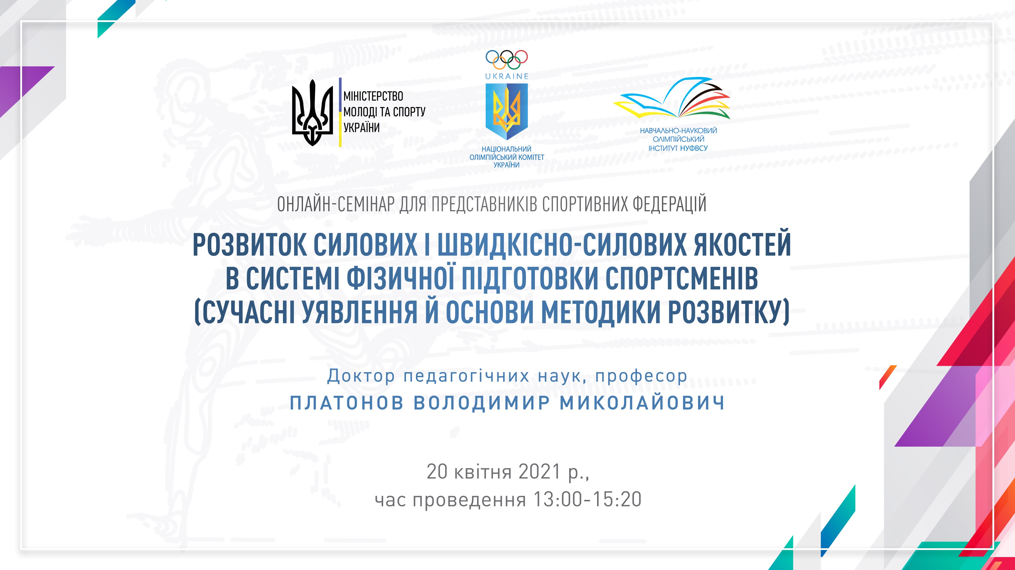Запрошуємо взяти участь в онлайн-семінарі: «Розвиток силових і швидкісно-силових якостей в системі фізичної підготовки спортсменів (сучасні уявлення й основи методики розвитку)».