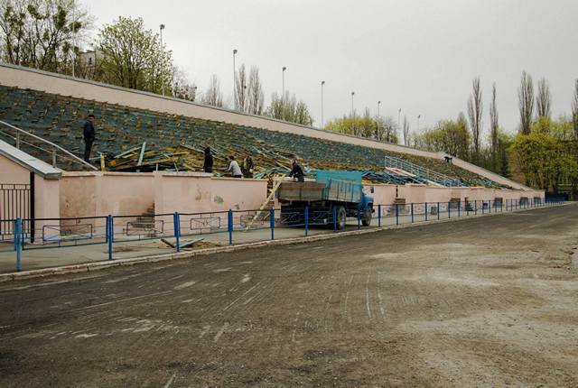 Кажуть, що можна вічно дивитися на три речі: як горить вогонь, як тече вода і як проходить реконструкція стадіону «Піонер». 9 квітня відновилися роботи з ремонту стадіону. Було демонтовано сидіння на трибунах. Сьогодні, 10 квітня, проходять роботи з вивезення залишків сидінь.